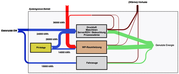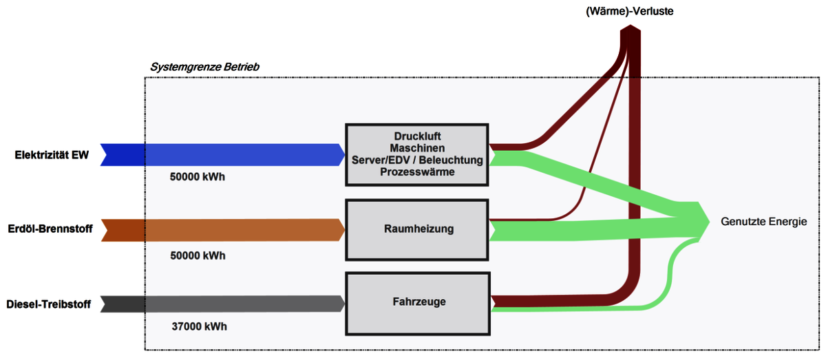 Wo wird welche Energie benötigt? Um die Frage qualitativ zu beantworten müssen die Energieverbraucher genau identifiziert werden. Dazu braucht es nicht zwingend den Aufbau eines Umweltmanagementsystems. Mit einer Besichtigung vor Ort und anschliessender Analyse werden die bekannten und weniger bekannten Energieflüsse untersucht und erfasst. Energiespar- und Produktionspotentiale kommen zum Vorschein.